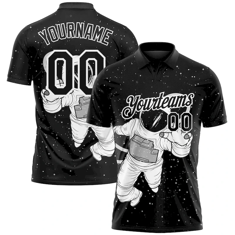 Custom Black White 3D Pattern Design Astronaut Performance Golf Polo Shirt