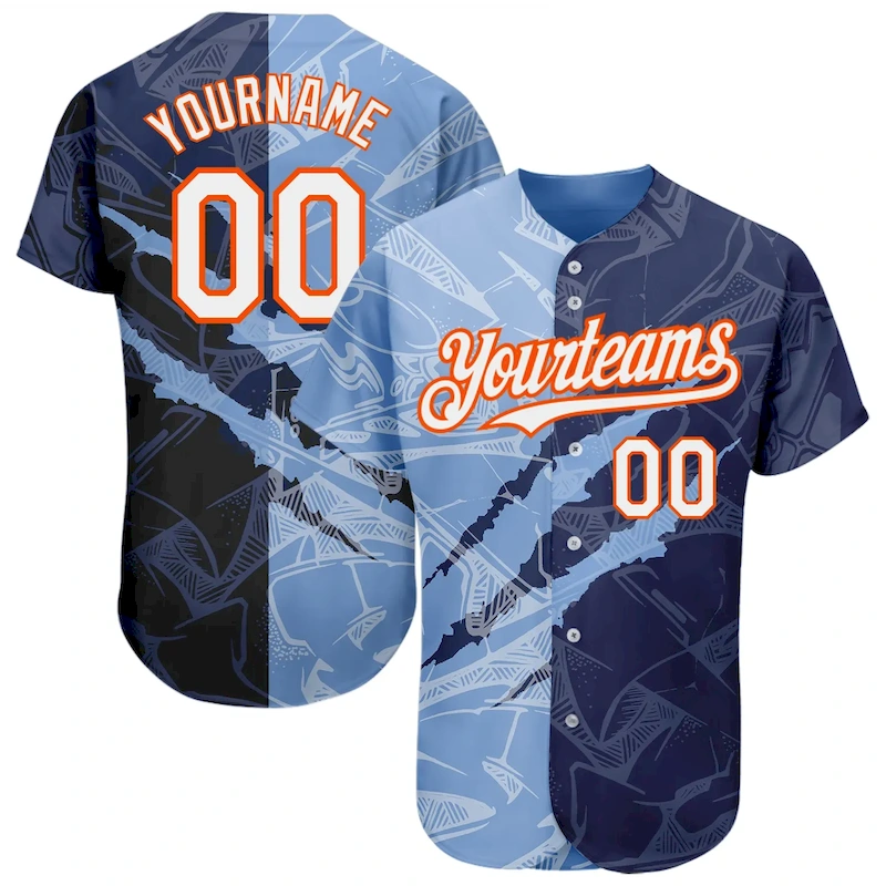 Custom Graffiti Pattern White Navy Light Blue-Orange 3D Scratch Authentic Baseball Jersey