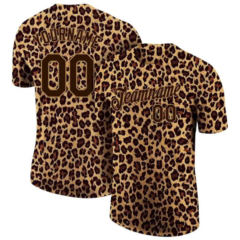 Custom Brown Brown-Old Gold 3D Pattern Design Leopard Performance T-Shirt