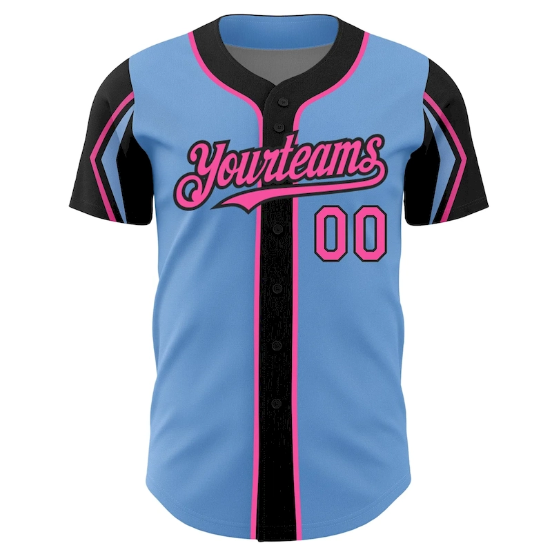 Custom Light Blue Pink-Black 3 Colors Arm Shapes Authentic Baseball Jersey