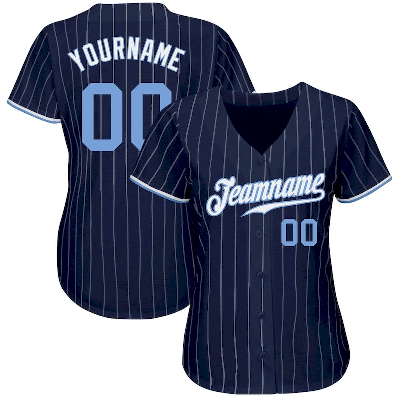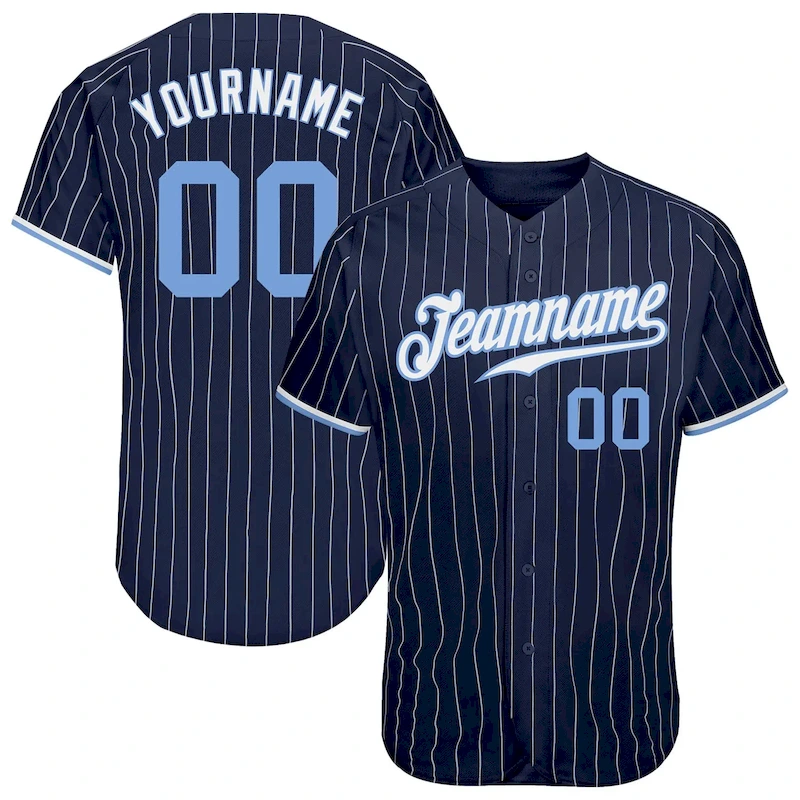Custom Navy White Pinstripe Light Blue-White Authentic Baseball Jersey