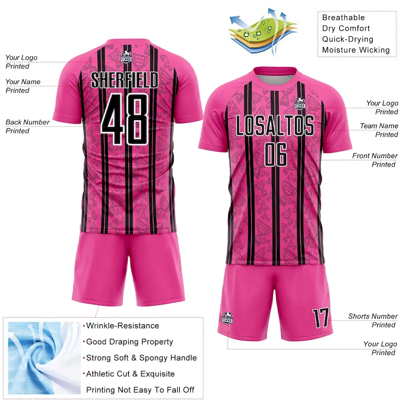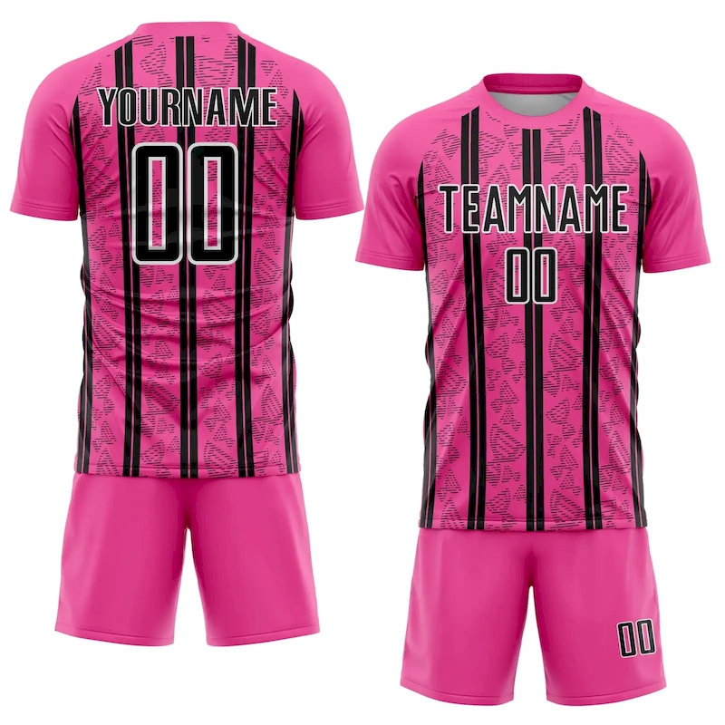 Custom Pink Black-White Stripe Line Sublimation Soccer Uniform Jersey