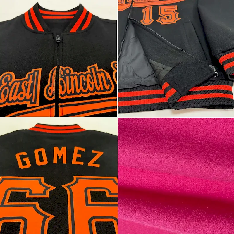 Features: 1. Invisible zipper front 2. Material: 100% Poly wool 3. Stitched team or player name and numbers 4. Stand-up