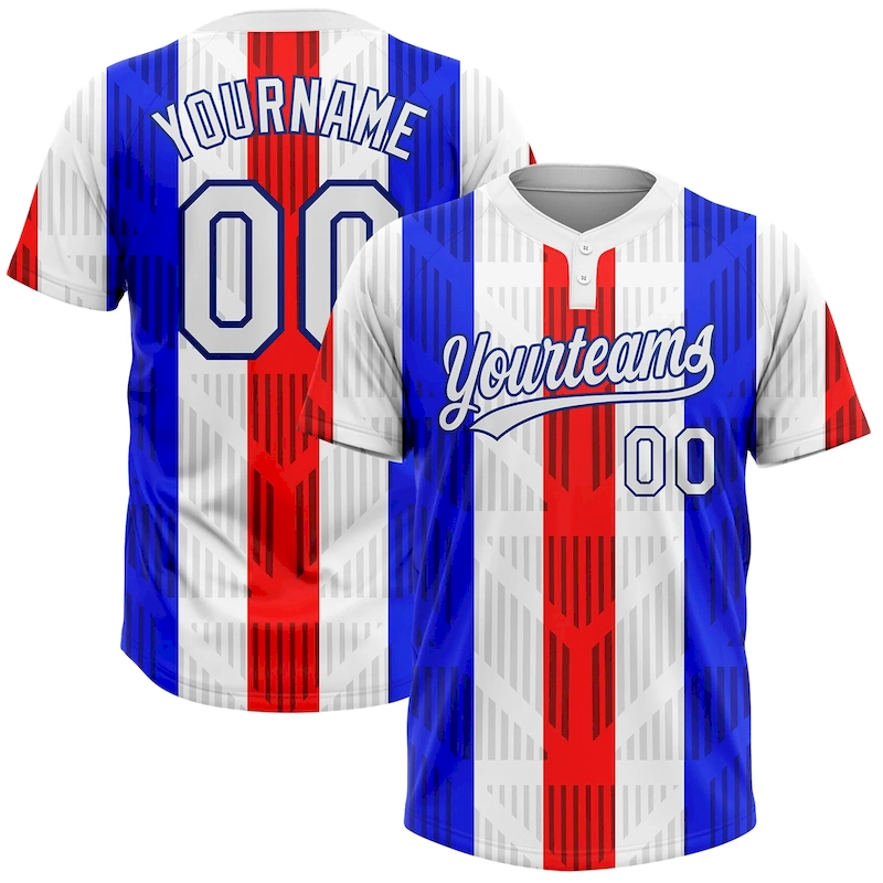 Custom Red White-Royal 3D Pattern Two-Button Unisex Softball Jersey