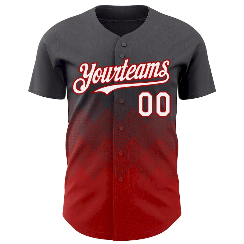Custom Steel Gray White-Red 3D Gradient Square Shape Authentic Baseball Jersey