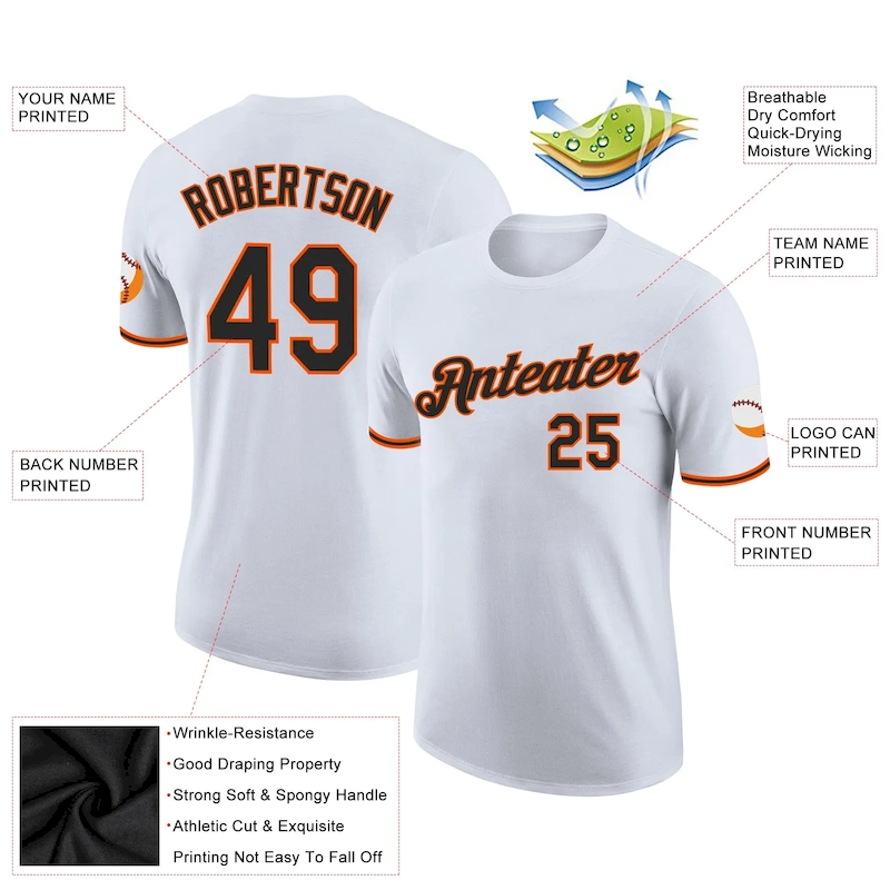 Custom White Black-Orange Performance T-Shirt