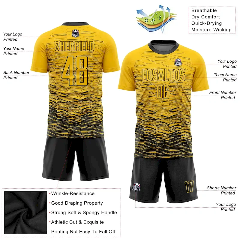 Custom Yellow Black Sublimation Soccer Uniform Jersey